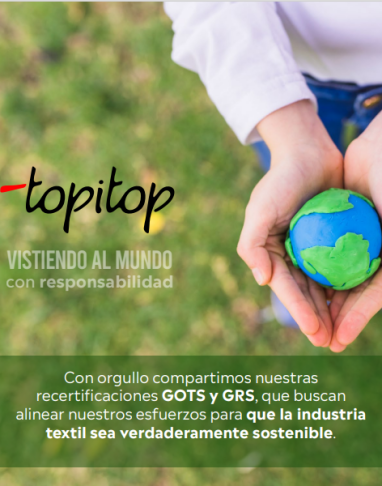 Basados en los valores que practicamos, conscientes de los impactos y los riesgos actuales que enfrenta el planeta, nos hemos comprometido a fomentar un futuro sostenible a través del desarrollo de productos y procesos sostenibles a lo largo de toda nuestra cadena de valor. Buscamos con ello generar un impacto positivo y contribuir al desarrollo de una sociedad más equitativa y consciente del cuidado ambiental. Topy Top S.A. viene dando pasos importantes en temas de Sostenibilidad, basados en nuestra estrategia.